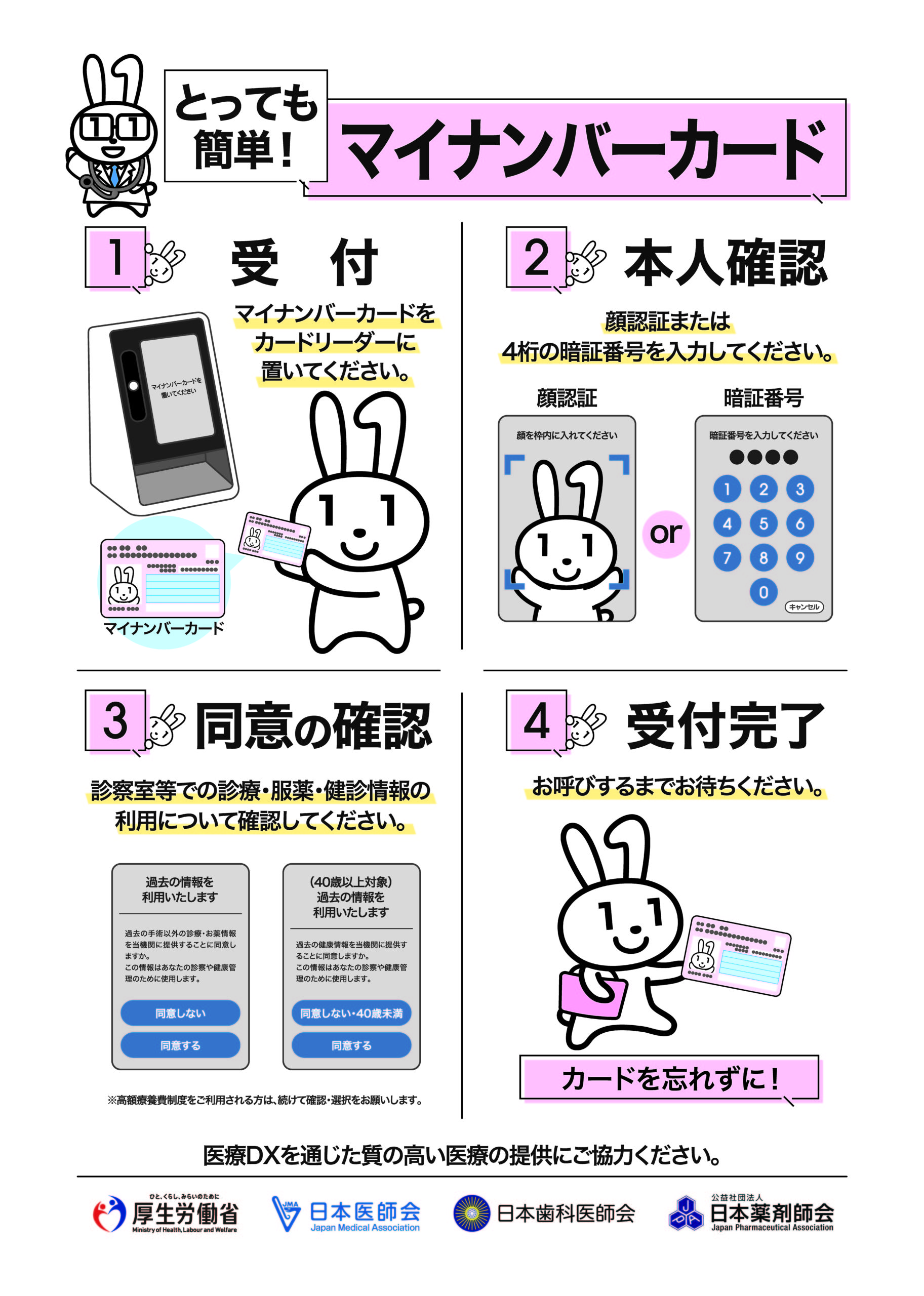 ・マイナンバーカードの健康保険証(マイナ保険証)の利用を促進することで、患者さまの負担軽減と医療情報の効率的な共有を目指しています。